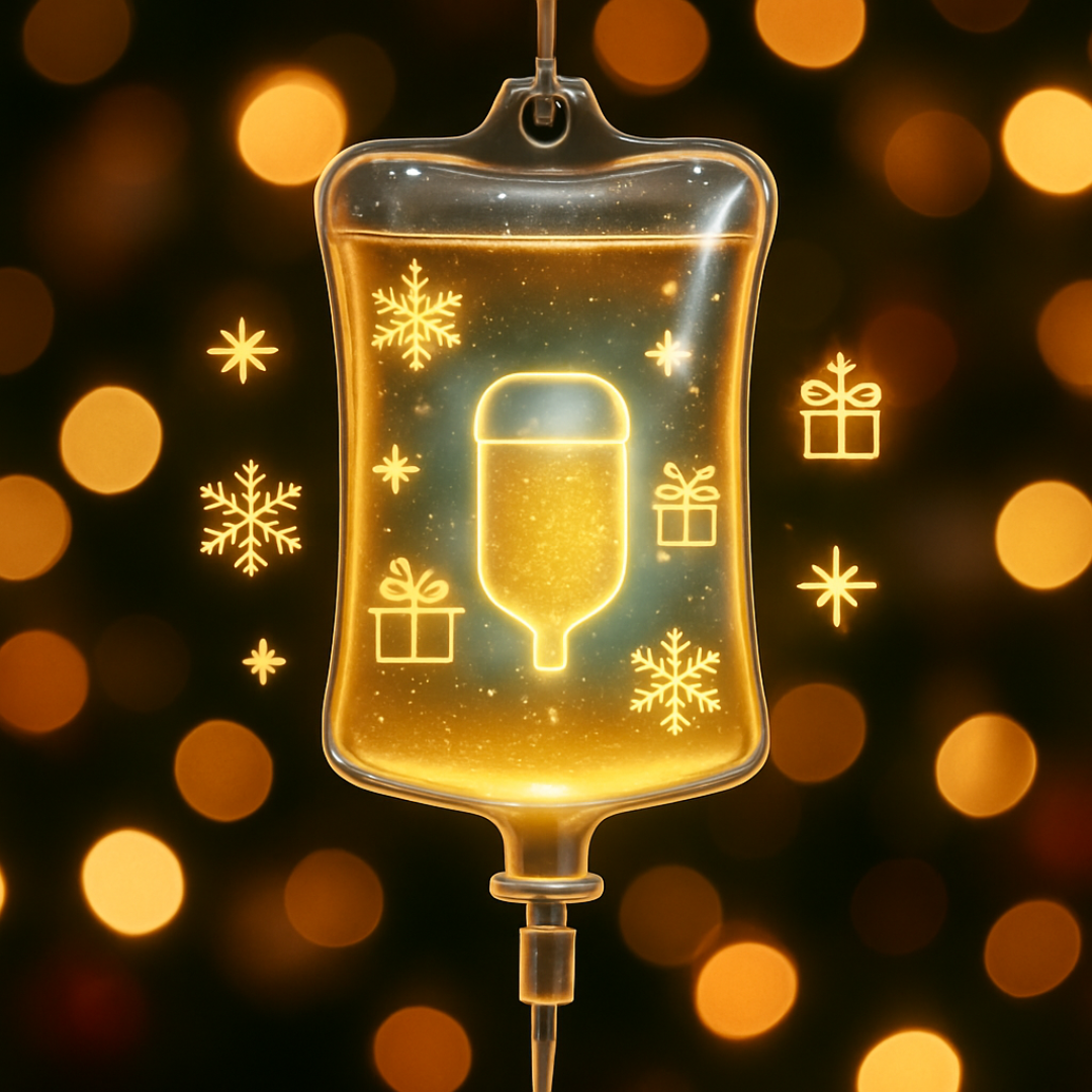 Holiday glow? Achieved — thanks to electrolytes, hydration, and glutathione options.